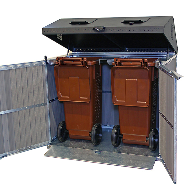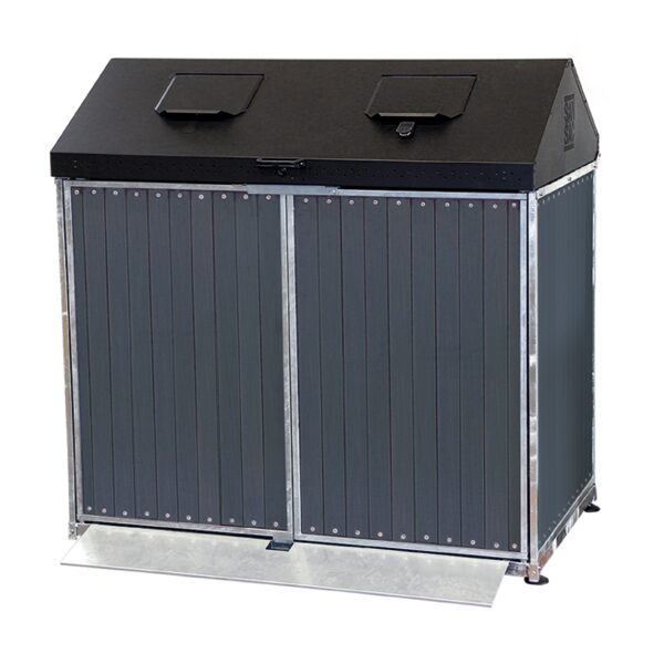 Ulkomitat ovat 1400 x 870 x 1300 mm (leveys x syvyys x korkeus). Siihen voidaan sijoittaa kaksi 140- tai 240-litraista jäteastiaa.