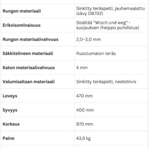 Itsekantavat, kaarevat ulkoseinät on valmistettu jauhemaalatusta sinkitystä teräksestä ja yhdistetty tukeviin, litteisiin sivupaneeleihin. Ovessa on vahvistettu rakenne ja hitsatut saranat. Kaksi oven rajoitinprofiilia estävät saranoiden yliojentumisen. Kaksinkertaisessa kansirakenteessa on hitsatut ohjauslevyt, jotka ohjaavat jätteet sinkittyyn sisäastiaan. Sisäastia tai valumisallas on tiivistetty. Takana ja pohjassa oleva U-profiili mahdollistaa yleiskiinnityksen pyöreisiin tai neliskulmaisiin tolppiin ja lisää rakenteen vakautta.