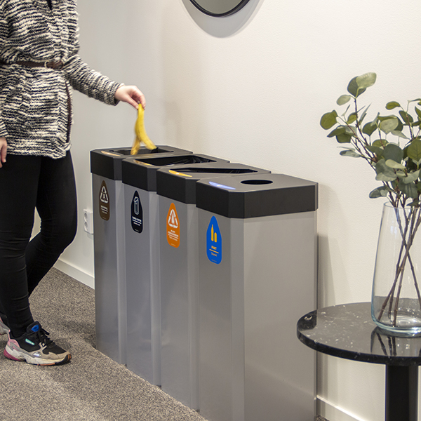 Jos haluat teipata (folioida) lajitteluasemasi, voimme tehdä sen tilauksesta! Näin sinulla on erinomaiset mahdollisuudet sovittaa tuotteet ympäristöön. Valitse 1–4 jäteastiaa omien tarpeidesi mukaan ja valitse sopiva kansi jätejakeen mukaan helpottaaksesi lajittelua entisestään! Voit sijoittaa Kompakt-astiat joko riviin vierekkäin tai tiiviiksi neliöksi. Voit myös asentaa astiat seinälle.